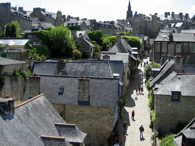 château en haut. Peu de touristes, contrairement à Dinan, bruyante, bondée, hyper touristique, et pas plus jolie.