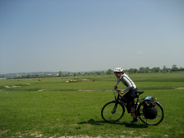 A Pontaubault, nous montons la tente dans un camping tranquille tenu par un anglais, puis nous continuons à travers les polders jusqu'au Mont.